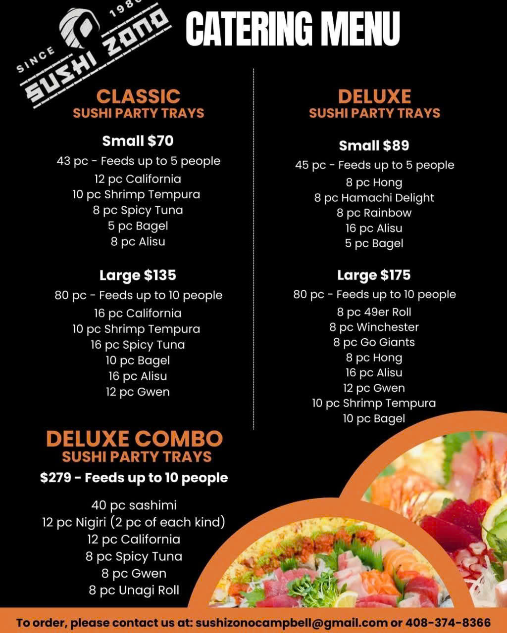 For nearly 40 years, Sushi Zono has been serving fresh, handcrafted sushi to the Campbell and San Jose community. From cozy dinners at the sushi bar to beautiful party platters, every dish is prepared with care using quality ingredients.